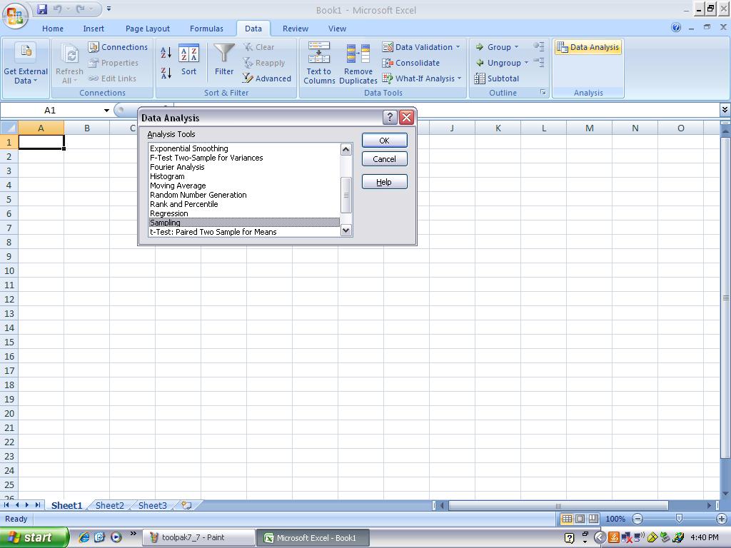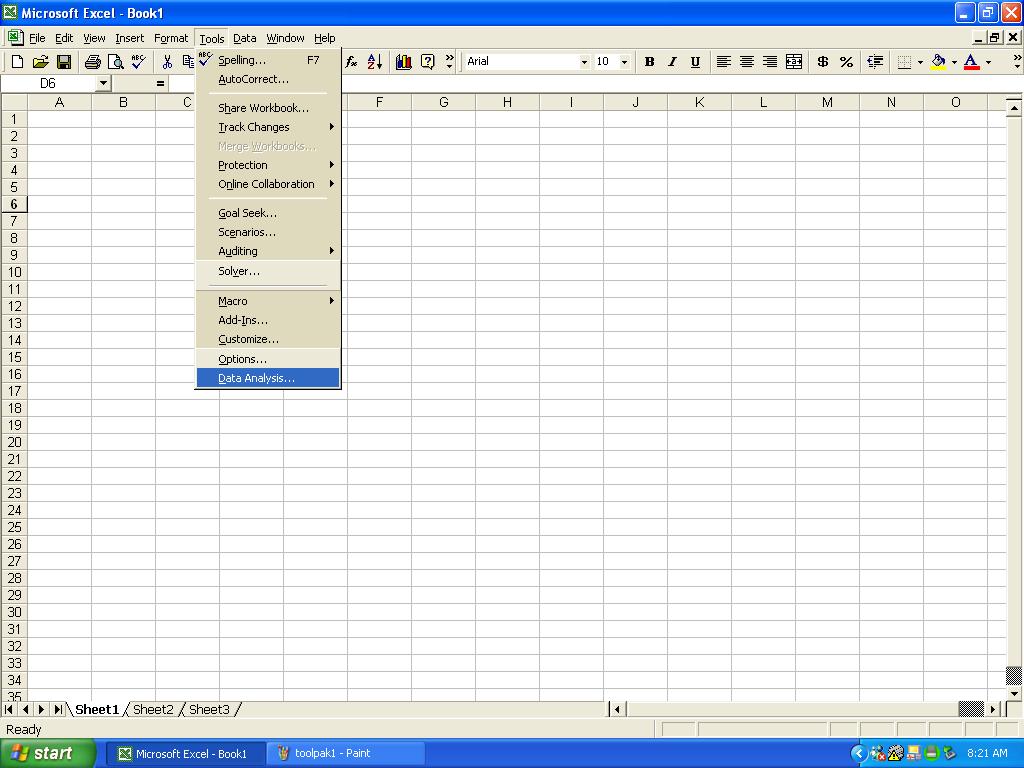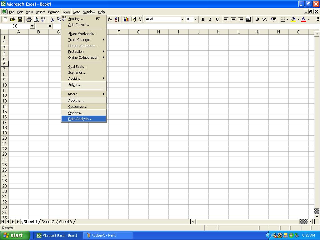 Now the Data Analysis item should be in the toolbar. Select it to get a dialog box.
