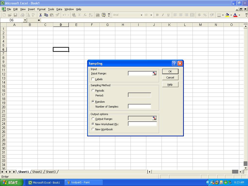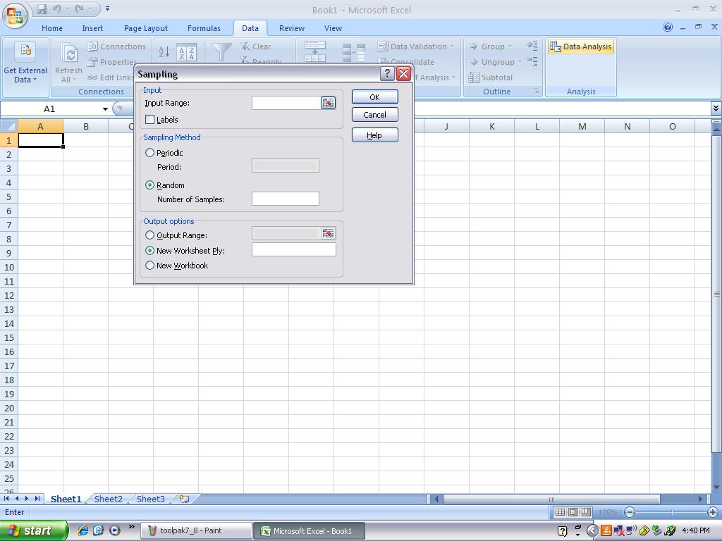Use the Sampling dialog box to select your samples. (Fill in the rows where your data is and the size of the sample)